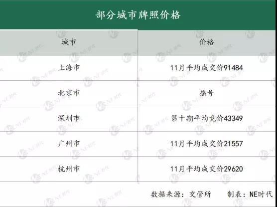 目前,A級新能源車上量的城市都是一線限行限購城市,車牌獲取成本高。以上海為例,11月份車牌平均成交價高達91484元,牌照成本基本上能購買一臺平價A級燃油車。北京實行排隊搖號的政策,時間成本比較高。深圳、廣州、杭州等城市牌照成本基本都在2萬以上,加上限行限購政策以及這些城市相關配套的相對成熟,新能源車也能跟燃油車進行競爭。